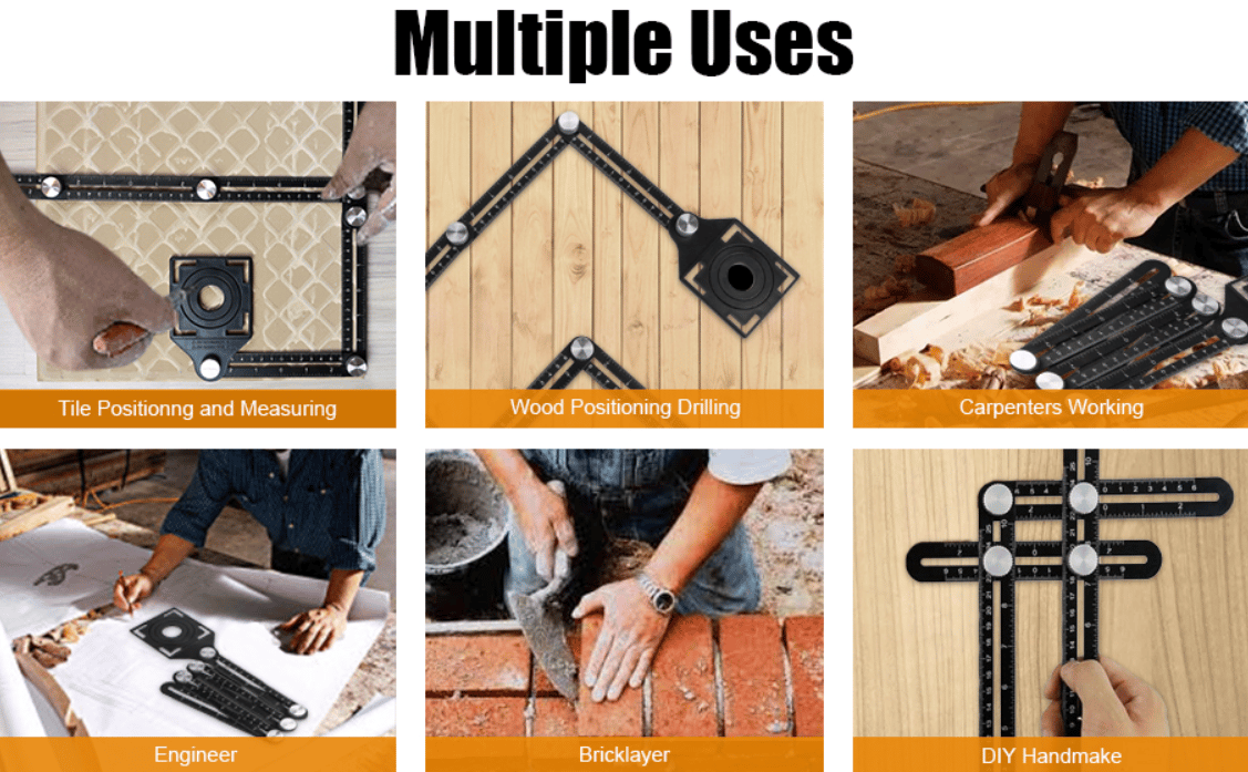 • 2. A universal layout measuring tool while working in tiles, brick pavers, lumber, laminate, wood, flooring project, and so on. It is a best-selling construction tool among workers.