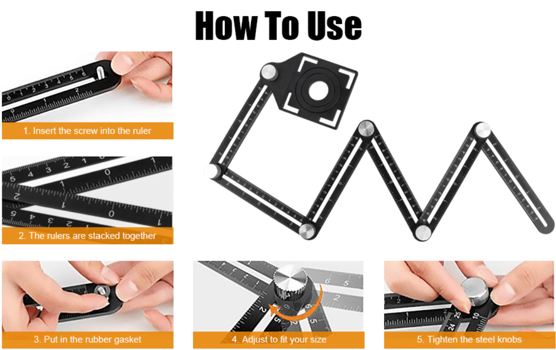PROFESSIONAL TOOL: Designed with a tile hole locator, the multi-angle ruler helps you quickly find the correct position to drill the hole. With a flexible and detachable design with folding 12 sides, you can measure special angles or shapes much easier. It's a good helper to improve your work efficiency.