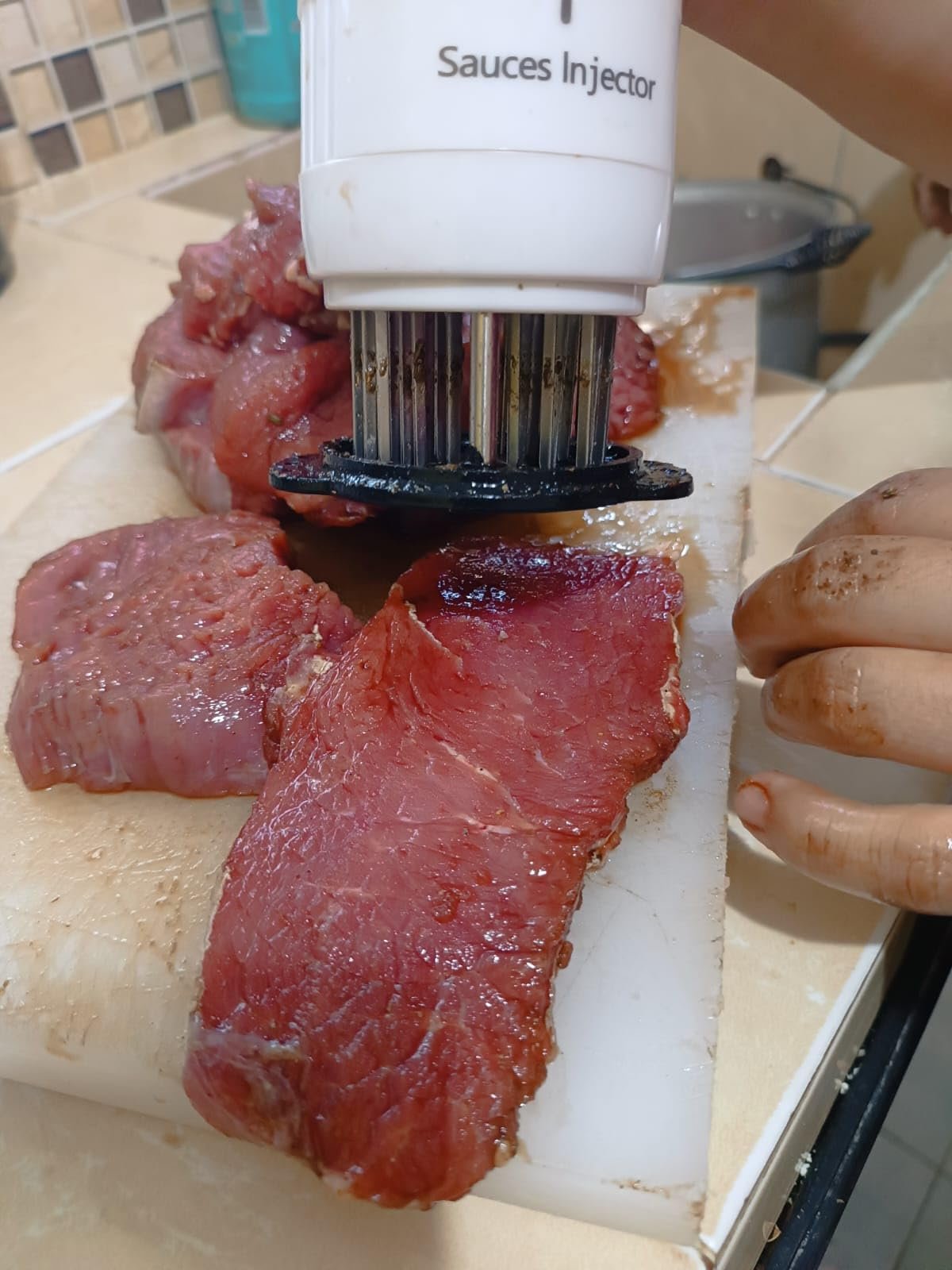 Inject Marinade: Insert needle at multiple points and press gently for even distribution.