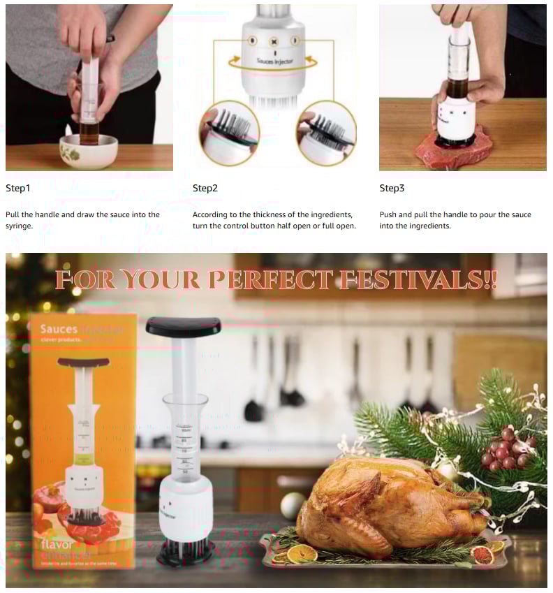 Precision Flavor Injection: Ultra-sharp stainless steel needles ensure even distribution of marinades, sauces, and spices deep into meat fibers.