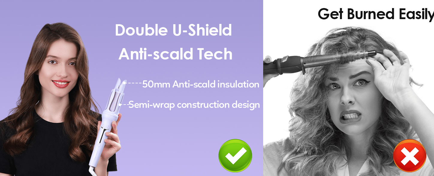 🎁Double U-shield Anti-scald Technology: Equipped with a U-shaped slot and a half-wrapped heat-resistant design, you can curl your hair quickly while significantly reducing the risk of scalp and finger burns. Even for beginners, creating beautiful curls is effortless and worry-free. Say goodbye to the fear of burns and enjoy perfect curls every time! The 1.25inch(32mm) barrel diameter creates gorgeous large waves to suit any occasion.
