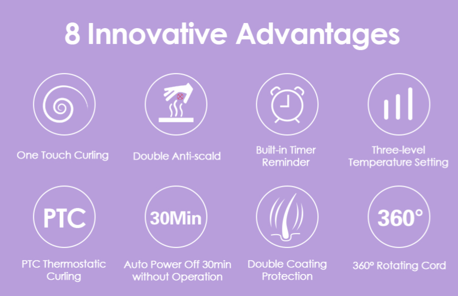 💖Safe & Stylish: Style with confidence, 32mm hair curler iron offers multiple safety features, including overheating protection, anti-tangle protection, and auto shut-off after 30 minutes without use. The 360° swivel cord and 2.2m length provide ultimate flexibility for effortless, beautiful curls.