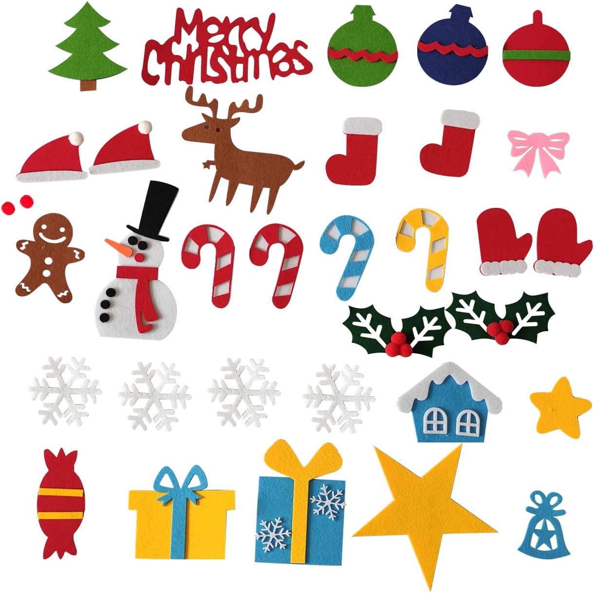 Christmas tree included: 1 x DIY felt Christmas tree + 34 pieces ornaments; Christmas tree decorations are ideal for homes, schools, offices, shops etc. The top has a connecting agent that can be hung on a wall, door or window.