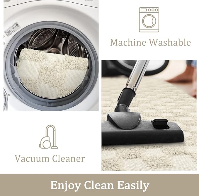 Maintaining the rug is simple! Regularly vacuum or sweep to remove dust. For a deeper clean, toss it in the washing machine on a gentle, cold cycle and air dry. (Note: You may see a slight floating fluff after the first wash, but this is normal.)