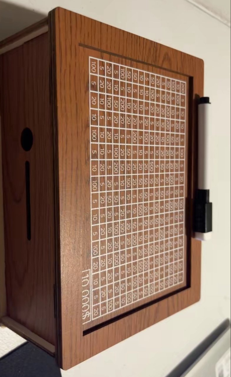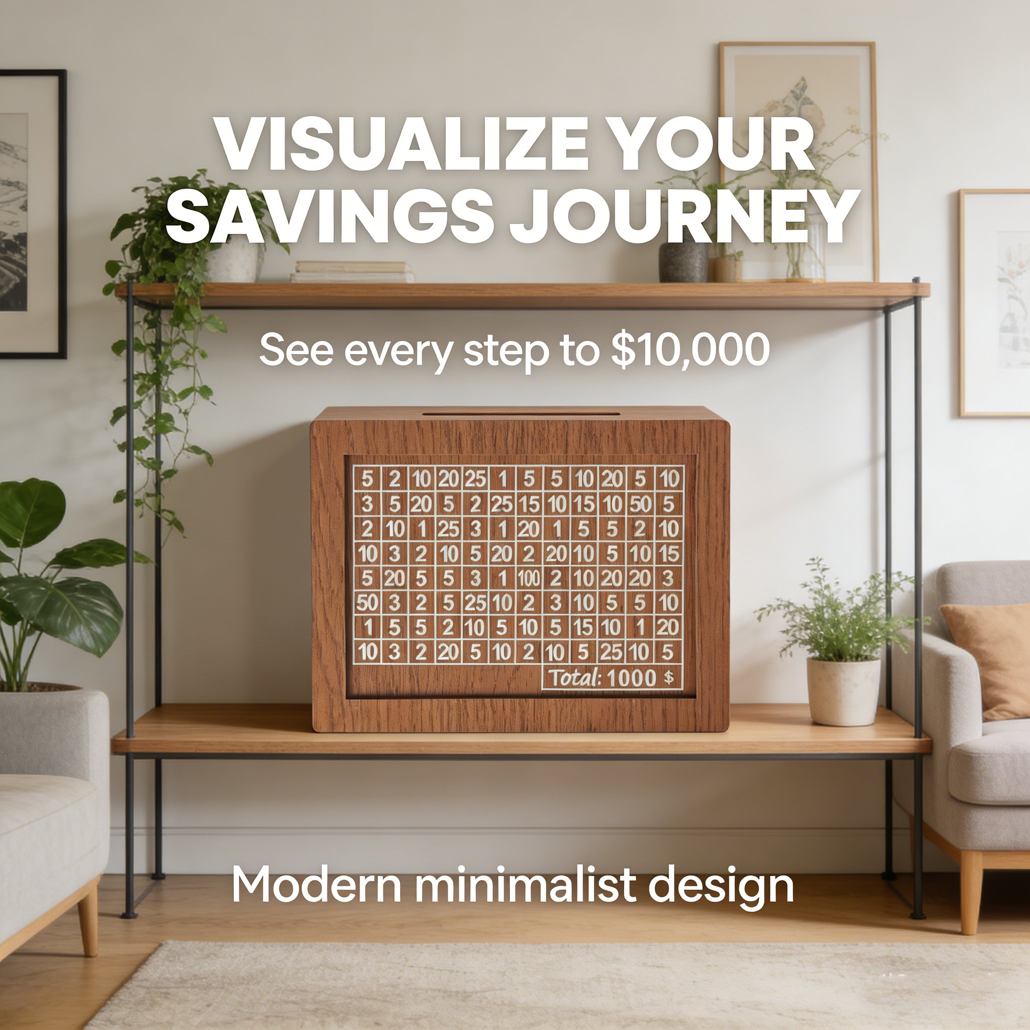 Introducing the Cash Vault Wooden Savings Box, the perfect tool to help you achieve your financial goals in a fun, organized, and motivating way. This modern minimalist design is not just a piggy bank—it's a visual saving system that lets you track your progress towards your goal of saving $10,000. Whether you are saving for a vacation, an emergency fund, or a big purchase, this money box will keep you on track and motivated.