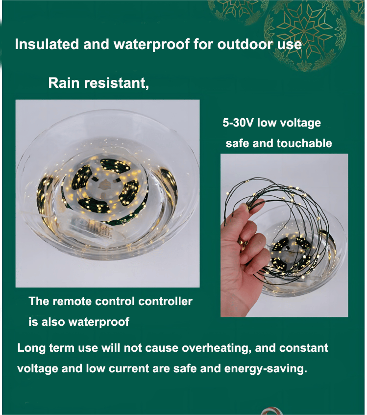 Made of new copper wire, perfect for Christmas trees, garlands, and balconies, gardens, indoors and outdoors. It blends into the background, leaving only a warm and bright light.