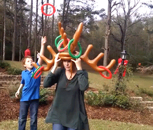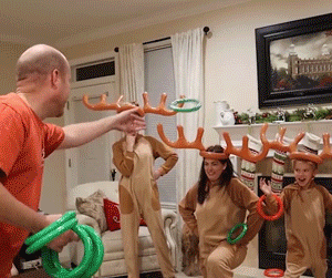 Throw the round rings onto the large reindeer antlers on your friend's head and take turns wearing the antlers to make your own games.