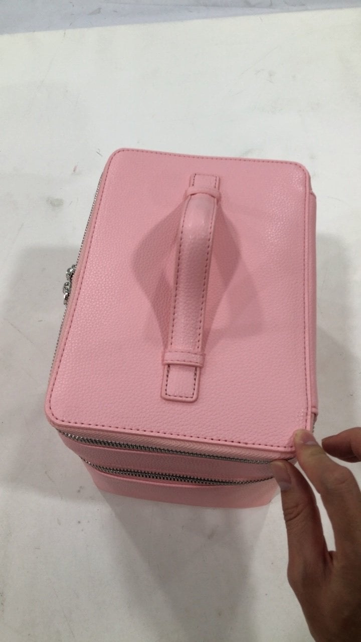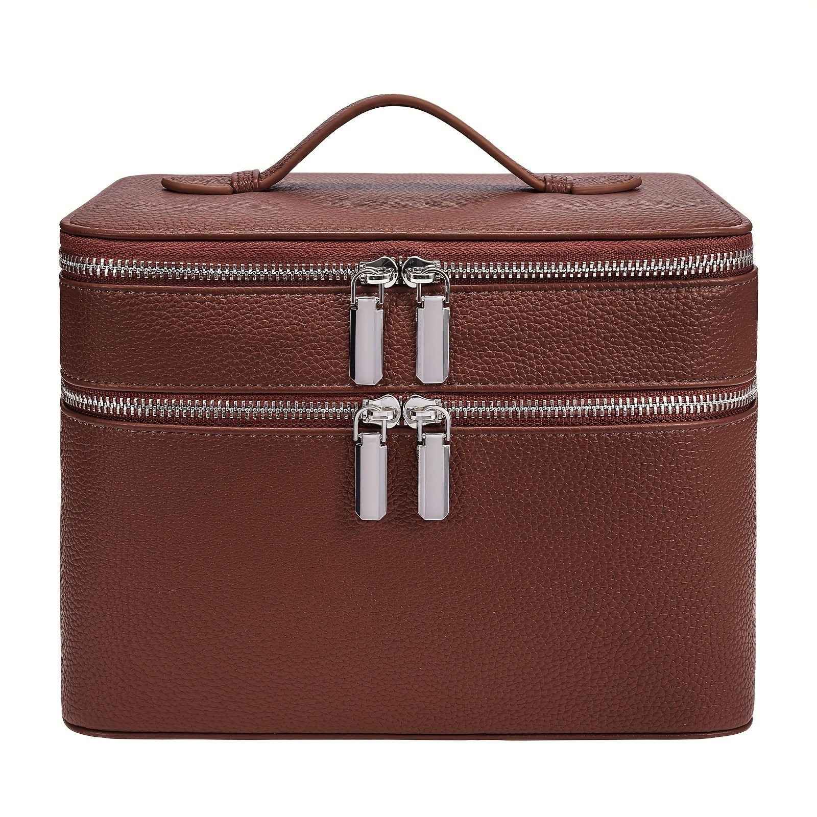This makeup bag features a two-layer (double-lid) design that clearly separates skincare, cosmetics, and tools. The upper and lower compartments prevent cross-contamination between liquids, powders, and brushes. With generous depth and width, it easily accommodates full-size bottles, foundations, palettes, hair tools, and daily essentials—perfect for home organization or extended travel.