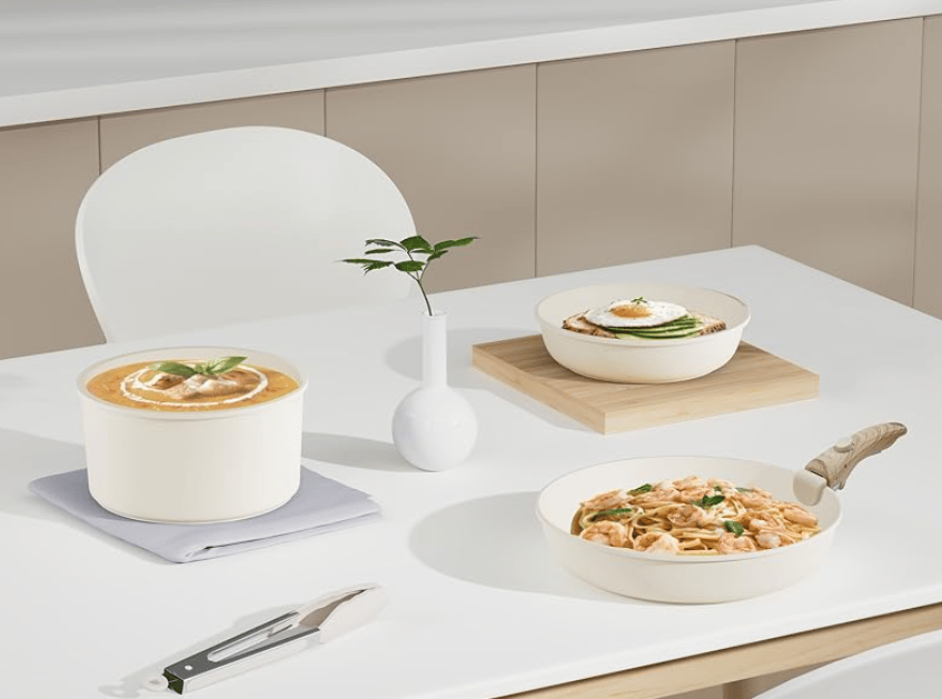 - Induction Compatible: The cookware set features a magnetic base that ensures even heat distribution, making it suitable for all stovetops, including induction.