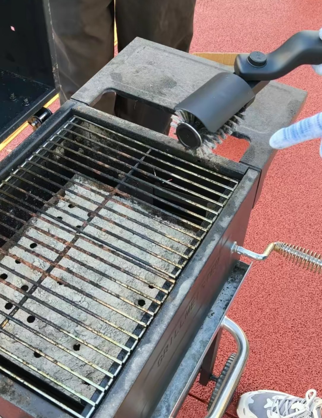 1️⃣ Turn on the brush and choose your speed setting based on your grill’s needs.