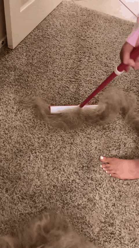 A: Our broom is designed to lift pet hair from carpets and rugs that vacuums often miss. The soft rubber bristles grab hair, making it easier to clean those hard-to-reach spots.