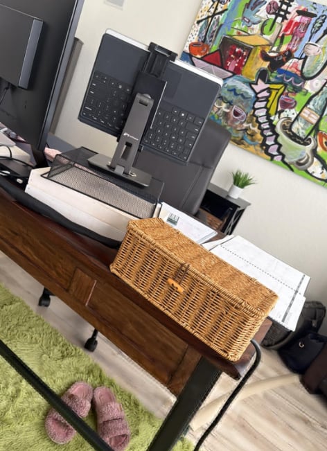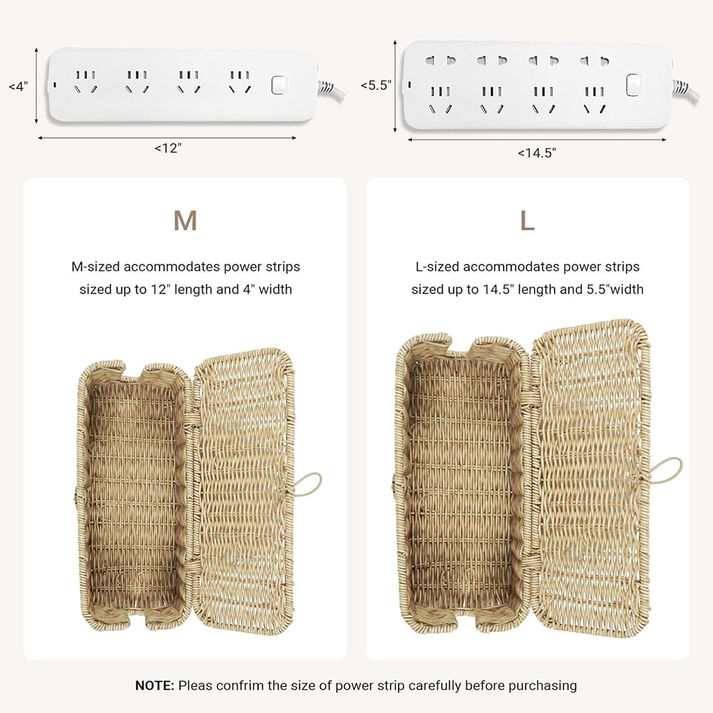 This cable management box helps conceal tangled cords, power strips, and adapters, creating a cleaner and more organized environment. The woven natural design adds a calm, boho-inspired touch to any room while keeping cables out of sight.