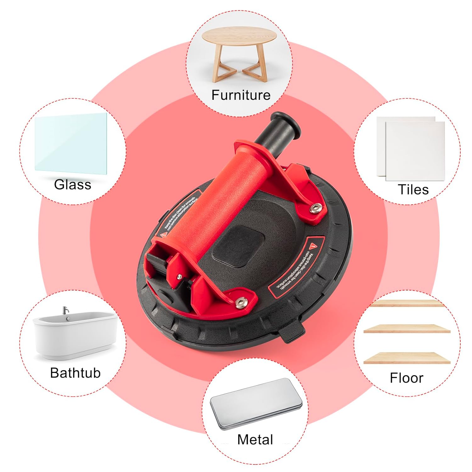 ✔ Effortless Operation: Simply place the suction cup on a smooth, clean, and non-porous surface. Press the hand pump until the suction cup firmly adheres, and you’re ready to lift! When finished, press the release valve to detach it—quick and easy.