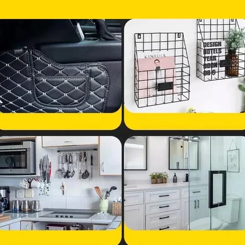 Diese hängenden Schnallen können an Schränken, Bücherregalen, Vitrinen, Kleiderschränken, Wänden, hinter Türen, Autositzen, Auto-Mittelkonsolen, hängenden Küchenutensilien und Werkzeugen, Badezimmerzubehör, Datenkabeln, Heimdekoration, Snacks, Taschen usw. befestigt werden Ihren täglichen Bedarf decken.>> Starke Haftung