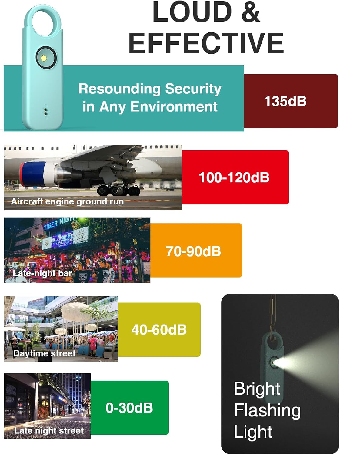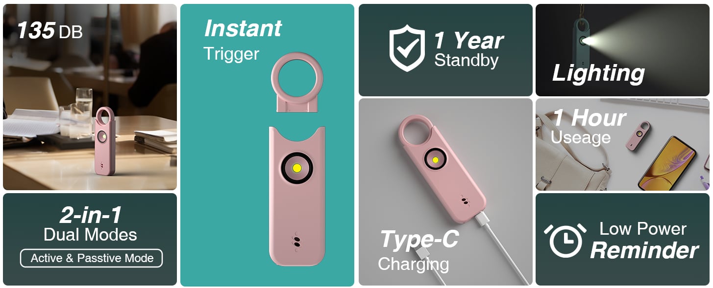 Durable: This keyring with personal alarm is made of sturdy ABS material, which is safe and durable. Provides perfect emergency protection for women, children, elderly, girls, students and night shift workers.