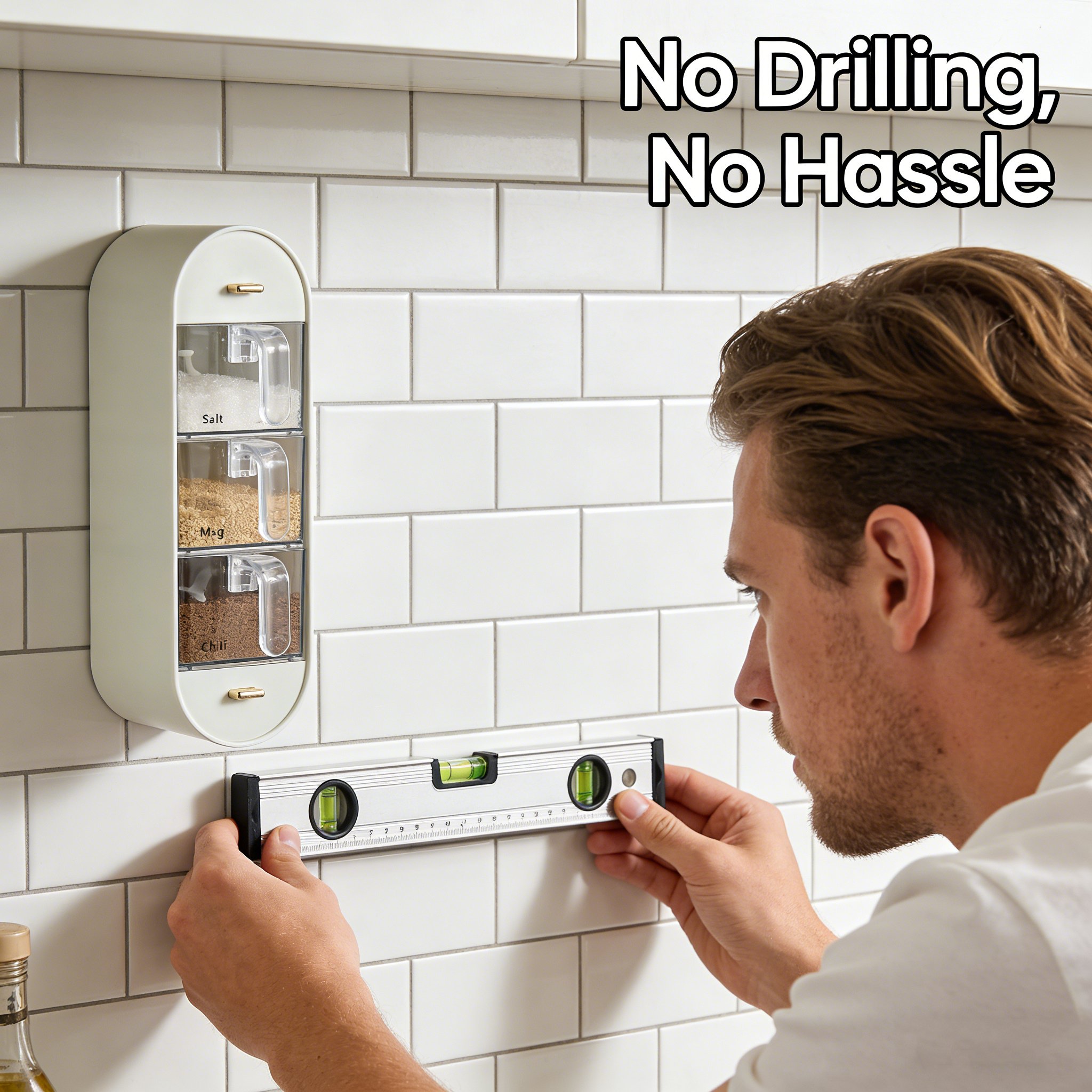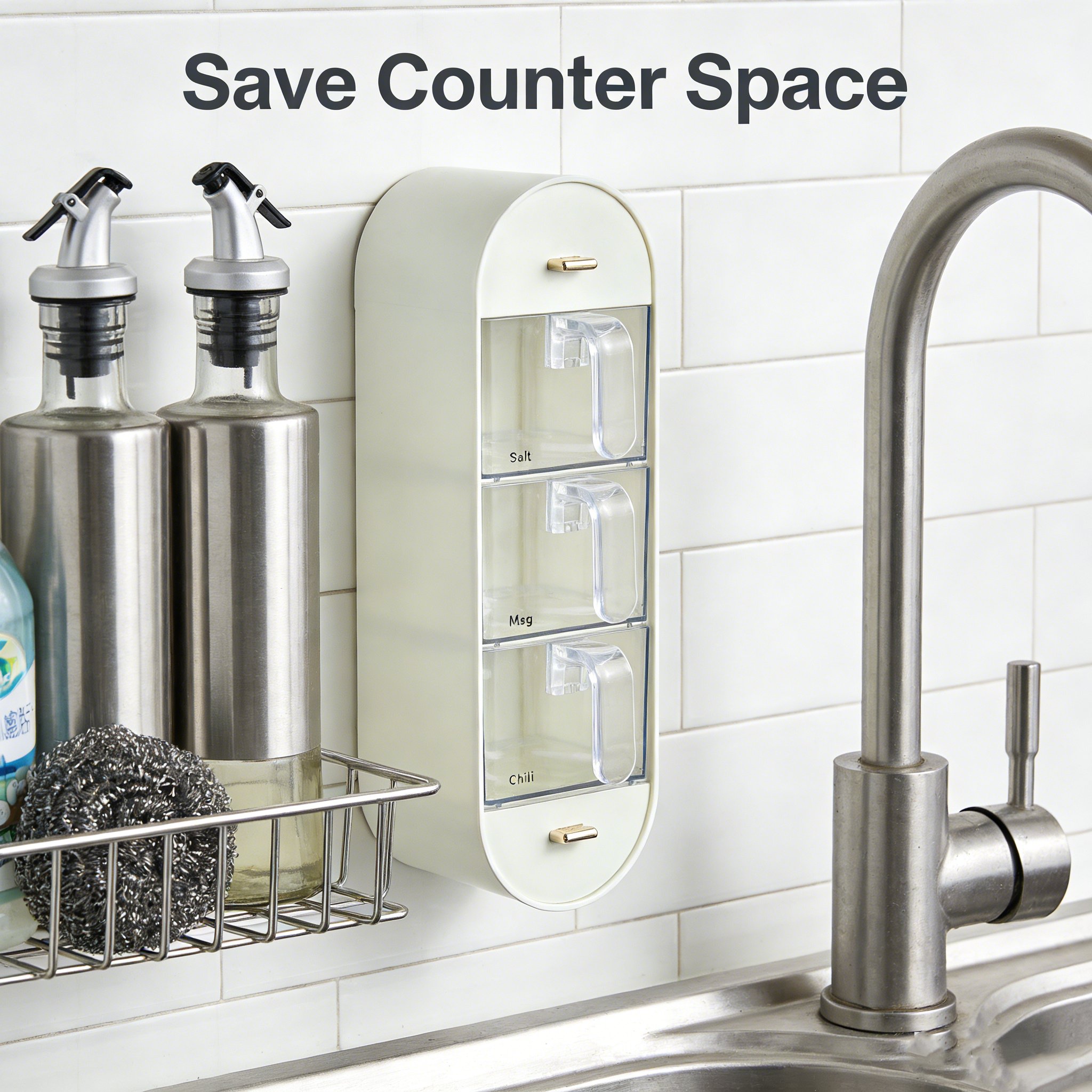Upgrade your kitchen organization with this innovative wall-mounted seasoning box. Designed to keep your favorite spices visible, accessible, and beautifully organized—without drilling or damaging your walls. Perfect for apartments, rentals, and modern homes.