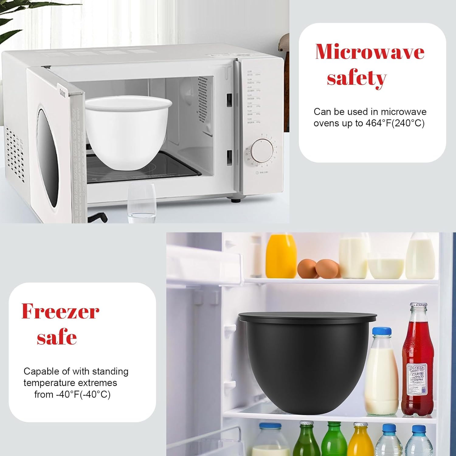 Safe for hot mixtures, cold doughs, refrigeration, reheating, and more.
