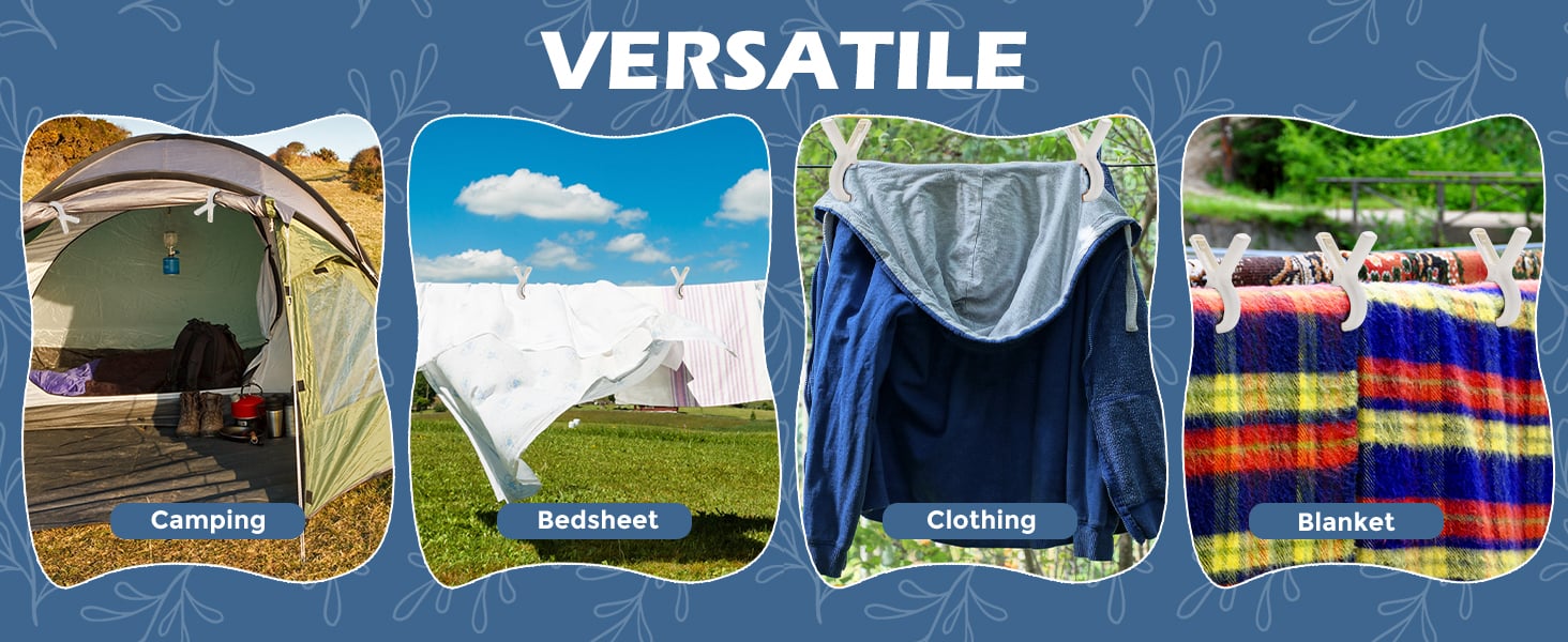 A: Yes! These clips are versatile – perfect for hanging clothes, blankets, tablecloths, or securing lightweight items indoors and outdoors.