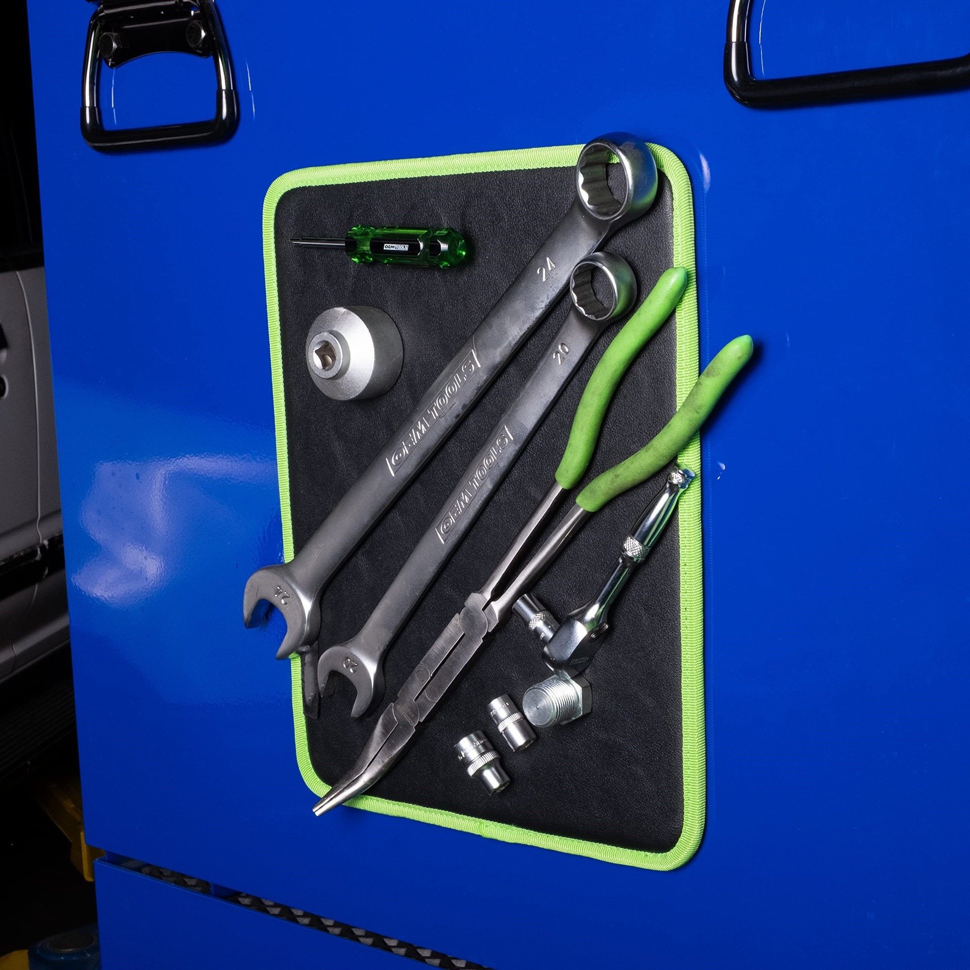 "Best tool organization solution ever! I can now keep everything I need at arm's length while working. The magnet is super strong, and the mats hold everything perfectly in place."