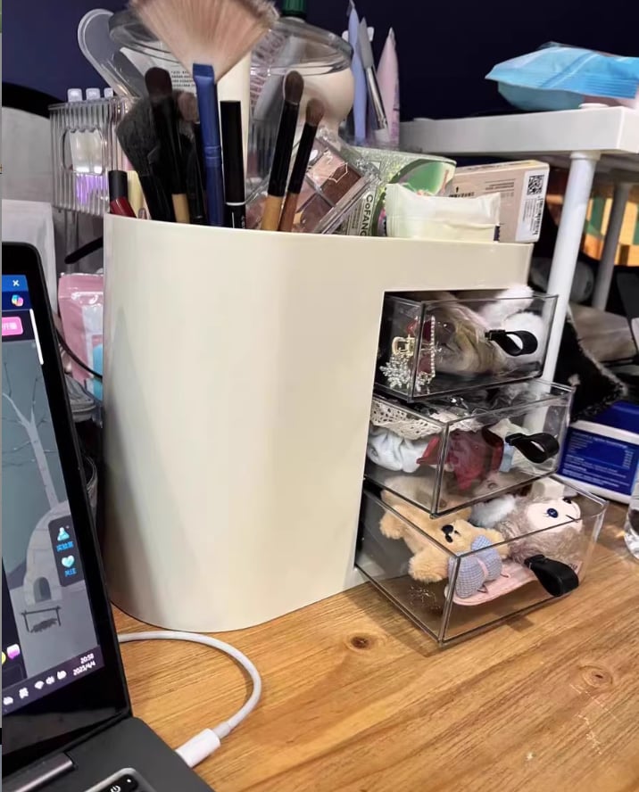 "Love this organizer! My brushes are finally dust-free, and the drawers are perfect for storing all my skincare products. It fits nicely on my bathroom counter."